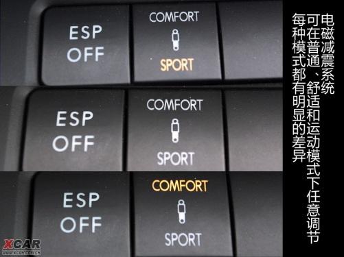 之所以美女們沒有抱怨,或許是因為我一直將懸掛模式放在舒適檔。這臺尚酷2.0TSI試駕車裝備了電磁減震系統,可在普通、舒適和運動三種模式下任意調節,每種模式都有明顯的差異,這也是尚酷在測試中取得好成績的有力幫手,這點在之后的測試篇當中會為大家詳細介紹。