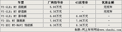 據(jù)東南經(jīng)銷商處銷售人員介紹,目前V3菱悅?cè)惮F(xiàn)車正在逐步充足貨源,最低配的車型仍因尚未投產(chǎn)而無法購(gòu)買,請(qǐng)消費(fèi)者諒解。V3系列其它的幾款高配車型各店已經(jīng)不需要再預(yù)訂,基本可以滿足消費(fèi)者購(gòu)車提車的需要。同時(shí)銷售人員還說,現(xiàn)在購(gòu)車可享受到1000元的現(xiàn)金優(yōu)惠,另有精美的裝飾贈(zèng)送。