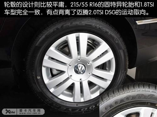 輪轂的設(shè)計則比較平庸,完全不符合新邁騰2.0TSI DSG的運動氣質(zhì)。215/55 R16的固特異輪胎,尺寸也和1.8TSI車型完全一致,也不符合現(xiàn)今車輪越來越大的發(fā)展趨勢。較厚的扁平比也明顯是舒適性的取向,與新邁騰2.0TSI DSG技術(shù)領(lǐng)先的取向背道而馳。