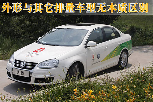 從外觀上來(lái)看1.4TSI速騰車(chē)型與目前市場(chǎng)上銷售的1.8T、1.6以及2.0車(chē)型基本一致,車(chē)輛的尺寸也沒(méi)有明顯的變化,而因?yàn)樵?jīng)是08奧運(yùn)綠色車(chē)隊(duì)的成員,因此該車(chē)的外觀貼有相應(yīng)的貼紙,更加凸顯了這款車(chē)型的與眾不同。