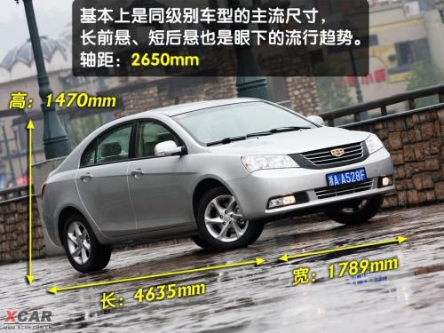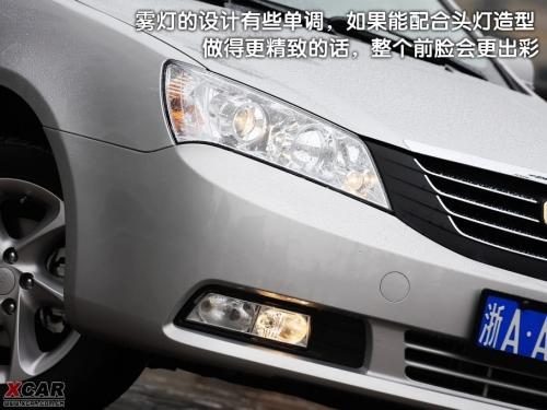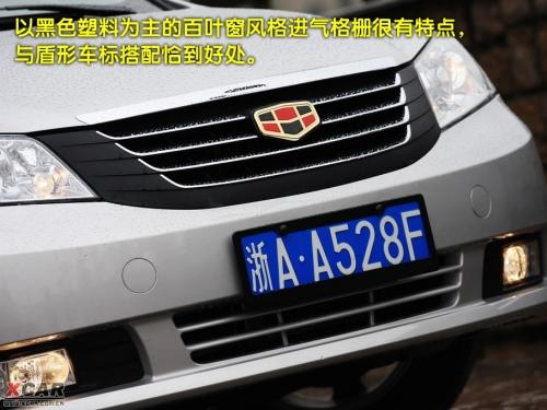 以黑色塑料為主的百葉窗風(fēng)格進(jìn)氣格柵很有特點(diǎn),個(gè)人感覺和以方塊為基調(diào)的盾形車標(biāo)搭配恰到好處。頭燈和尾燈都是眼下最流行的造型,雖然依稀還有些模仿的影子,但是整體效果不錯(cuò)。如果把帝豪車標(biāo)擋住的話,真的很難想到這是一臺吉利車。美中不足的是霧燈的設(shè)計(jì)有些單調(diào),如果能配合頭燈造型做得更精致的話,整個(gè)前臉會(huì)更出彩。