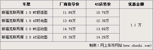據(jù)長(zhǎng)安福特經(jīng)銷商處銷售人員介紹,目前購(gòu)買兩廂福克斯的消費(fèi)者可以得到1.1萬元的優(yōu)惠。兩廂新款福克斯分為1.8L和2.0L兩種排量,入門級(jí)車型的1.8L手動(dòng)舒適版經(jīng)優(yōu)惠后售價(jià)下降到了10.79萬元。而高配的2.0L自動(dòng)運(yùn)動(dòng)版售價(jià)同樣也降到了14.29萬元。