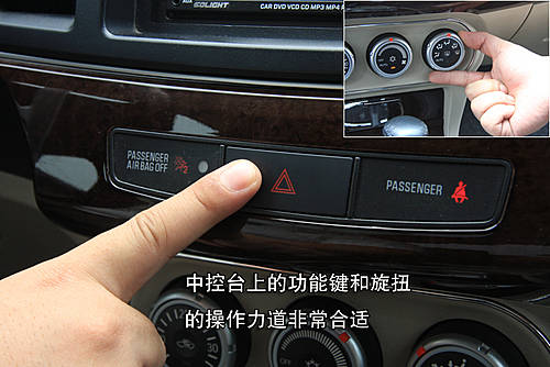 中控臺(tái)上的各個(gè)功能鍵的開關(guān)和旋扭的操作力道非常合適,也非常接近,因而使用起來很舒服。