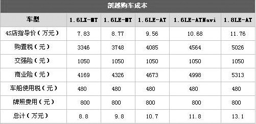 日常用車過程中還會產(chǎn)生一些意外費用和非固定支出費用,如交通違章,汽車修理費用等,這部分不可預知的費用我們暫且定為1000元。那么綜合以上的分析可以看出新凱越一年的用車成本在1.8萬元到2.2萬元之間。
