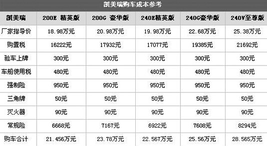 一、購車成本,凱美瑞2.4排量的240E精英版在價格方面優勢比較明顯。相比于2.0排量的車型,性價比更加突出。裸車價格僅為19.98萬元。
