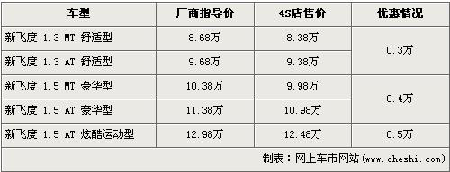 據(jù)廣州本田北京地區(qū)4S店銷售人員介紹,新飛度 1.5L炫酷運(yùn)動版的優(yōu)惠金額為5000元。新飛度在售車型分為1.3L及1.5L共5個車型在售,1.3L車型優(yōu)惠金額為3000元。1.5L豪華版的手動和自動車型經(jīng)4000元優(yōu)惠后,現(xiàn)售價(jià)分別為9.98萬元和10.98萬元,1.5L炫酷運(yùn)動版的優(yōu)惠5000元,現(xiàn)售價(jià)為12.48萬元。