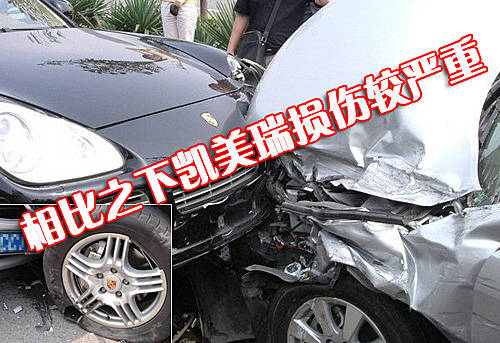 凱美瑞車頭的左側已經完全損毀,而車身較的保時捷卡宴左側輪胎輪轂以及懸掛系統受到了不同程度的損傷。維修方面,凱美瑞顯得要更為復雜一些,而進口的保時捷卡宴維修費用將會很高。