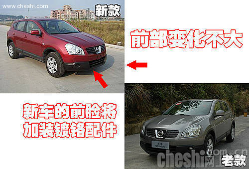 據(jù)該人士介紹:新款逍客不僅采用了國產(chǎn)的CVT變速箱,而且在車輛外觀方面還增加了鍍鉻裝飾條和前后裝飾配件。下面就根據(jù)網(wǎng)上車市獨家得到的新車諜照,來搶先了解一下新款逍客。