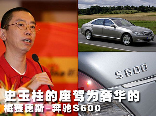 史玉柱曾經在央視的“贏在中國”中表示自己開的是“面包車”但實際上早期從史玉柱就擁有了梅賽德斯-奔馳-S500,而今換成了頂級的S600。擁有悠久歷史的奔馳S級是身份與地位的象征,無可比擬的豪華氣質以及奢華的配備是眾多國家元首以及各界成功人士的首選座駕。