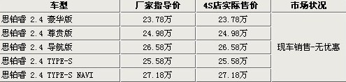 據(jù)東風(fēng)本田4S店銷售人員介紹,目前思鉑睿全系車型均以到店,但車型顏色比較單一。思鉑睿全系提供了塔夫綢白、彩晶黑、鈦金銀、炫影藍(lán)、炫動(dòng)紫五種外觀顏色,以及靜雅黃、靜逸黑兩種內(nèi)飾顏色供消費(fèi)者選擇。TYPE-S車型還推出炫速紅專用色。售后保養(yǎng)方面制定整車三年十萬(wàn)公里的保修政策,提供3個(gè)月/5000公里的易損件保修服務(wù)。