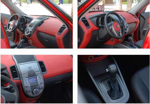 在方向盤也就是駕駛者的周圍分布著很多按鈕,不過(guò)別擔(dān)心,再生疏的駕駛者也不會(huì)因?yàn)檫@些按鈕或是功能而手忙腳亂,因?yàn)樵O(shè)計(jì)師早已經(jīng)為您的日常使用考慮的很周到了。位于儀表臺(tái)左側(cè)的三炮筒式儀表盤設(shè)計(jì)還算時(shí)尚,但是儀表盤的功能并沒(méi)有太多新鮮元素的注入,這一點(diǎn)也是因?yàn)槌杀镜目紤]而不得不落入俗套。中控臺(tái)左側(cè)下方是控制大燈高度的調(diào)節(jié)按鈕,右側(cè)的控制鈕是SOUL的最大特點(diǎn),即控制前車門揚(yáng)聲器發(fā)光的開(kāi)關(guān),它可以跟隨音樂(lè)節(jié)奏變換紅色燈光的閃爍,如同將迪廳的燈光帶入了車內(nèi)。
