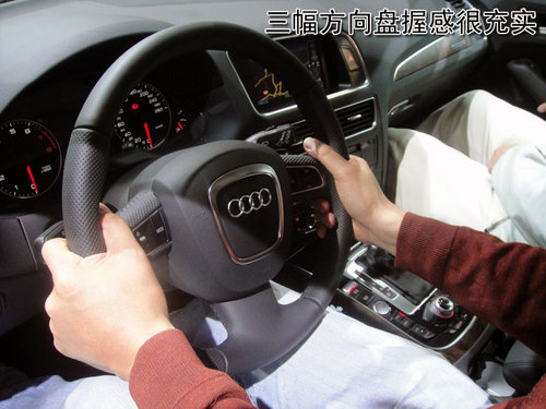 與進口Q5不同,國產Q5采用的是三幅邊式方向盤設計,并且運用真皮包裹,正中央道奇四環徽標采用鍍鉻處理,提供了鮮明的觸感及視覺效果。