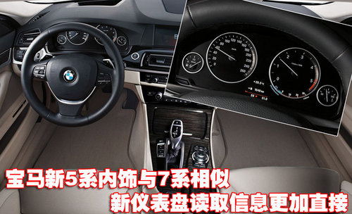 寶馬新5系的內(nèi)飾與7系有些相似,新款儀表盤(pán)讓駕駛員讀取信息更加直接。而第四代寶馬iDrive系統(tǒng)和6速電子手自一體變速箱,也均成為寶馬新5系的標(biāo)準(zhǔn)配置。