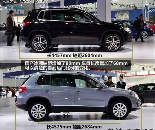 不過國產途觀的加長幅度并不算夸張,從外形上看B柱之前也沒有明顯的變化。加長的全部80mm估計都體現在B柱到C柱的地方,從后車門就能看出來這里的確拉長了一些。加長帶到的最直接的好處就是后排乘坐空間的提升,相信國產途觀現在的表現已經可以達到大多數消費者的標準。