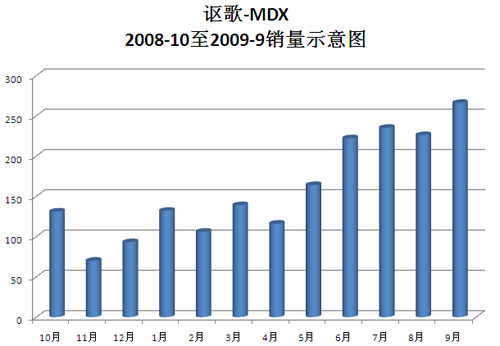 謳歌MDX是繼謳歌TL和RL兩款轎車引入國內(nèi)之后的第三款車型,謳歌MDX投放國內(nèi)市場后,一改謳歌TL和RL轎車平淡的銷量表現(xiàn)。通過上表近一年的銷量可以看出,謳歌MDX單月最高銷量已經(jīng)超過250臺,并且表現(xiàn)強勁的上升態(tài)勢。