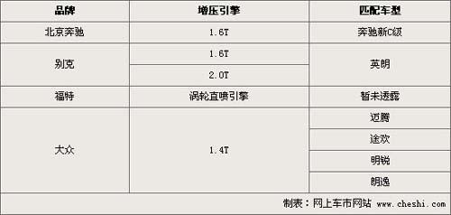 合資品牌方面北京奔馳未來(lái)將引進(jìn)奔馳的1.6升渦輪增壓引擎,將其裝配在奔馳新C級(jí)轎車中。而上海通用別克在09年廣州車展展出的英朗轎車也將在未來(lái)推出1.6T和2.0T兩款車型。09年長(zhǎng)安福特正式推出了ECOBOOST引擎計(jì)劃,該計(jì)劃是指在未來(lái)推出燃油直噴和渦輪增壓引擎,但具體車型目前長(zhǎng)安福特并未公布。大眾方面已經(jīng)成熟的1.4TSI引擎將列裝到邁騰、途歡、明銳、朗逸等車型中。