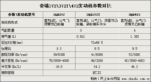 通過(guò)上表可以看出,奇瑞372T系列發(fā)動(dòng)機(jī)基本上是以原有的0.8升發(fā)動(dòng)機(jī)為基礎(chǔ)研發(fā)的。但由于使用了渦輪增壓技術(shù),提高了發(fā)動(dòng)機(jī)進(jìn)氣量進(jìn)而也提升了發(fā)動(dòng)機(jī)的功率和扭矩,所以我們看到這款0.8升排量的三缸發(fā)動(dòng)機(jī)在最大功率方面,相較老款發(fā)動(dòng)機(jī)有了5千瓦的提升;而最大扭矩已經(jīng)達(dá)到了1.1升發(fā)動(dòng)機(jī)的90牛米,并且相比4缸1.1升發(fā)動(dòng)機(jī)最大扭矩輸出時(shí)間來(lái)得更早。僅從技術(shù)指標(biāo)上來(lái)說(shuō),奇瑞的這款0.8T發(fā)動(dòng)機(jī)還是非常具有實(shí)力的。