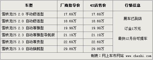 據(jù)東風(fēng)雪鐵龍4S店銷售人員介紹,C5目前已開始接受預(yù)訂,訂金為1萬元,目前陸續(xù)已有客戶開始訂車,最快12月份可以提到現(xiàn)車。C5的展車現(xiàn)已到店,對(duì)這款車感興趣的朋友不妨親身去體驗(yàn)一下。