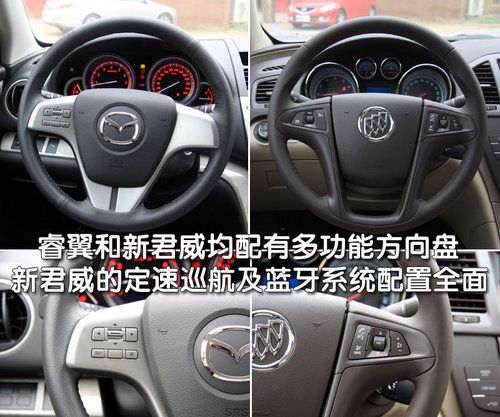 睿翼與新君威均配備了多功能方向盤,但在功能上有所差異,睿翼2.0豪華版只集成了音響控制系統(tǒng),而新君威2.0精英版集成了音響、定速巡航及藍牙電話系統(tǒng),新君威在人性化配置上更加全面。