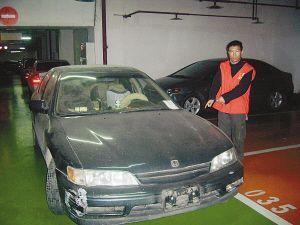 民警問3人為何在車庫逗留,幾人表示剛停好車。順著男青年手指的方向,民警發現一輛滿是灰塵已看不出顏色的第五代廣本雅閣[綜述 圖片 論壇]轎車。