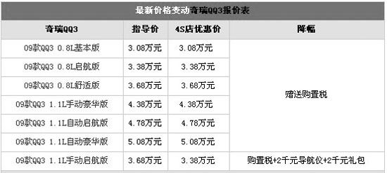 編者近日走訪了奇瑞汽車廣州地區的經銷商了解到,目前購買奇瑞QQ3,啟航版贈送購置稅、2千元導航儀、2千元禮包,總價值5500元。其他版本則贈送購置稅,喜歡這款車的朋友不妨到店詳談以爭取更多的優惠。