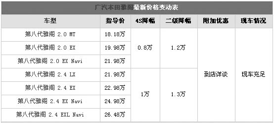 日前車(chē)天下汽車(chē)網(wǎng)記者從廣本4S店了解到,雅閣系列的車(chē)型優(yōu)惠幅度在8000-1萬(wàn)元之間,不過(guò)在二級(jí)市場(chǎng)上,2.0L優(yōu)惠1.2萬(wàn),2.4L最高優(yōu)惠已經(jīng)達(dá)到了1.3萬(wàn),其中2.0L手動(dòng)基本型最低僅為16.98萬(wàn),關(guān)注該車(chē)的消費(fèi)者可咨詢?cè)摻?jīng)銷(xiāo)商。