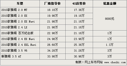 據廣汽本田4S店銷售人員介紹,目前供應的既有老款雅閣,也有新款車型,其中2.0排量和2.4低配車型可優惠8000元。目前性價比較高的百萬紀念版可優惠1萬元,2.4頂配車型可優惠現金3萬元,銀色,金色等有現車供應。3.5排量車型最高優惠現金3萬元。