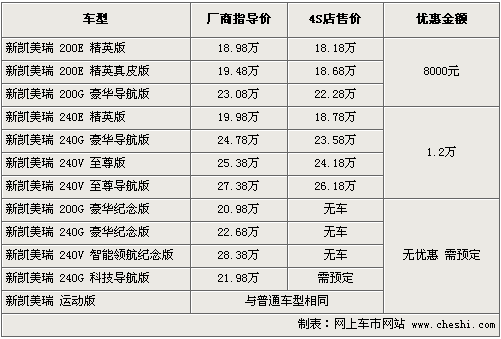 目前凱美瑞2.0和紀念版部分車型需要預訂,部分豪華版有現車供應,但顏色不全。目前2.0排量可優惠現金8000元,2.4排量最高可優惠1.2萬元。目前消費者如果訂車的話,需要訂金5000元,1月中旬左右可到車。同時消費者如果購買運動版車型,全系任何一款均可以免費升級。