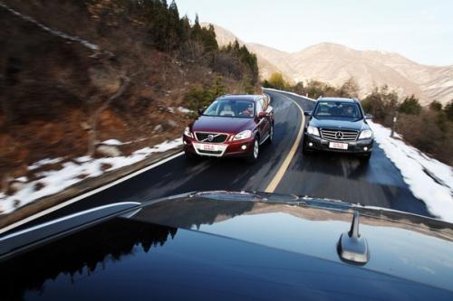 所有4款車都配備了3.0升以上的V6發動機,這意味著所有4位選手理論上都擁有不錯的動力表現。其中XC60還配備了一套雙渦輪增壓裝置。所以沃爾沃在力量方面占有先天優勢。雖然280馬力最大功率并沒有比奔馳和奧迪領先多少(Q5為270馬力,GLK則是272馬力),但從1500轉一直能維持到4800轉的400牛·米最大扭矩無疑讓它的中段加速力顯得尤其突出。寬泛的扭矩輸出帶還掩蓋了6速自動變速器反應欠敏捷的缺陷。但即使如此,變速器在普通模式下完成降檔提速的頓挫依然有點兒明顯。所以在城市高速路上跟著SRX一路殺向拍攝地點時,我一直都保持在手動模式。將速度維持在60-120之間,我需要做的只是在響應敏捷的4檔和5檔之間來回切換,巨大的低轉扭矩讓提速變得很容易,所以在那些按常理需要使用3檔的地方也可以維持在4檔,稍微多給一點兒油,問題就解決了。