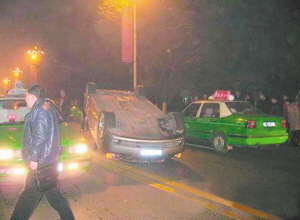 車水馬龍的主干道上,一輛嶄新的寶馬5系轎車四輪朝天,道路兩旁停滿了出租車……3日凌晨零時(shí)許,這一幕出現(xiàn)在樂山市區(qū)牛咡橋附近的嘉定路路段。目擊者說,事情緣于一輛出租車和寶馬車的紛爭,出租車“受氣”后引來了更多的出租車,眾的哥和現(xiàn)場圍觀者一齊將寶馬車翻了個(gè)底朝天。