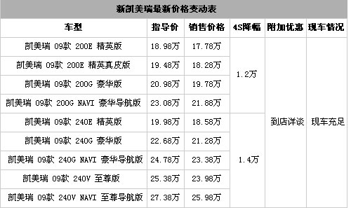 新凱美瑞是繼09款凱美瑞上市5個月之后,廣汽豐田再度重磅出擊對凱美瑞進(jìn)行升級, 此次改款最明顯的是在車輛的外觀上,新凱美瑞更具攻擊性,前臉、格柵、大燈、尾燈等都進(jìn)行了重新設(shè)計;車身顏色也增加了鎢金灰、香檳金、云母藍(lán)三種顏色;內(nèi)飾方面,新凱美瑞對燈光、面板、中控臺、音響按鈕等進(jìn)行了調(diào)整,并增加了電動后部側(cè)窗遮陽簾;配置方面新凱美瑞也在音響影像系統(tǒng)、感應(yīng)式雨刷等方面做了進(jìn)一步的強(qiáng)化。
