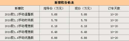 新賽歐展車已經(jīng)全面到達(dá)各地4S店,交訂金2000元-5000元不等可以訂車。最早可以在20號(hào)之前提車,最晚月底之前也可以提現(xiàn)車。有的一級(jí)城市現(xiàn)在就有現(xiàn)車可提,不過(guò)車型和顏色還是不太齊全。