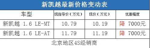 自2010年1月4日起,對別克凱越車型系列進行優化精簡,在售車型僅保留1.6LE AT(自動舒適版)和1.6LE MT(手動舒適版)兩款,同時市場售價調整為11.79萬元和10.79萬元,媒體紛紛猜測這種官方降價是在為英朗騰出價格空間。編輯從北京地區通用別克4S經銷商處了解到,目前凱越兩款車型均有銀色現車在售,購車可以優惠7000元現金。據經銷商透露,消費者要想以這個價格提車,需要在店內做一條龍服務,其中車輛四項基本保險可以打9折。以下是凱越最新價格變化表: