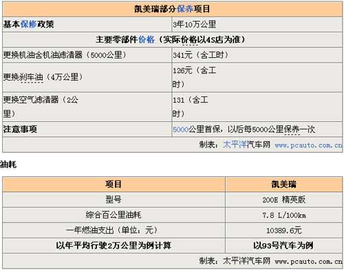 在保養方面,廣汽豐田為凱美瑞提供了3年或10萬公里的整車質保,在同級車型中相當出眾。凱美瑞擁有2.0升和2.4升兩種排量車型,我們從廣汽豐田4S店了解到,凱美瑞擁有的這兩款車型保養費用幾乎是一致的,只是在個別零部件上有微小的差異。