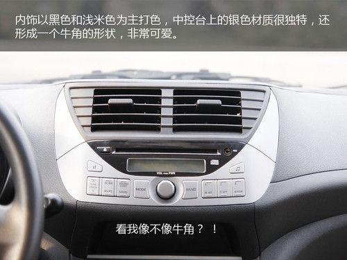 新奧拓的內(nèi)飾部分由淺米色和灰色兩種顏色拼接而成,雙色座椅、黑色真皮方向盤都能體現(xiàn)出一股時(shí)尚運(yùn)動(dòng)感;座椅由淺米色真皮和灰色針織面料組成,運(yùn)動(dòng)風(fēng)格的灰色里散發(fā)著一股和諧的氣氛,座椅的包裹性尚可,而且在座椅上還可以發(fā)現(xiàn)奧拓的LOGO,但是真皮坐椅設(shè)計(jì)只出現(xiàn)在新奧拓豪華型上。