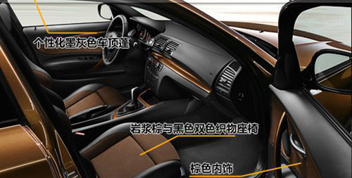 據悉,新車多處采用了個性化的設計組件,其中包括:馬拉喀什棕色(簡稱巧克力色)、Shadow Line外裝組件(黑色側窗飾條)和個性化的墨灰色車頂篷組合。另外為配合外觀的顏色,限量版車型在內飾使用織布布料,顏色共有巖漿棕/黑色,還巖漿棕/摩納哥藍、巖漿棕/蔓越莓紅和巖漿棕/墨灰色供四種搭配方式。