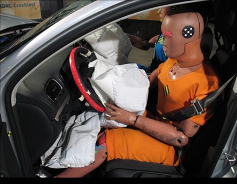 在成人保護方面:在正面碰撞過程中,車廂的結構剛性出色,受碰撞后變形較小,A柱內陷的幅度不超過10mm。對于模擬人全身各區(qū)域的保護都十分到位。膝部氣囊能夠對膝蓋和大腿部位提供比較充分的保護。無論乘員的坐姿如何,氣囊都能夠達到同樣等級的保護效果。在側面障礙物碰撞中,高爾夫獲得高分。但胸部保護丟了一分。