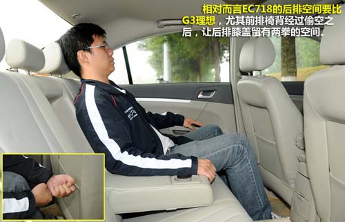 EC718的儲物空間跟G3不相伯仲,但EC718卻贏在細(xì)節(jié)處理上面。例如他的遮陽板是帶有夾子的、扶手箱是分兩層的、門板是可以放飲料的、手剎旁的兩個(gè)杯架底部是高低不同的(避免飲料干擾檔桿)、后排是設(shè)有煙灰缸的等等。