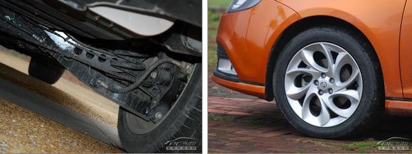 馬自達(dá)3與福克斯的淵源,相信大家都有所了解。故此,兩者在底盤上面基本相同,前麥弗遜,后多連桿,同樣配有前后副車架。輪胎規(guī)格是205/55R16,配16寸鋁合金輪圈。