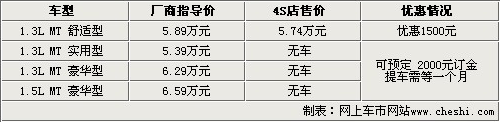 據海馬汽車4S店銷售人員介紹,在丘比特4款車型當中,售價5.89萬元的1.3L手動舒適型性價比較高,也已成為丘比特銷售的主力車型,可以享受1500元的現金優惠。其他兩款1.3L車型和1.5L車型均無現車,如想預訂需要交2000元訂金,到車時間為1個月左右。