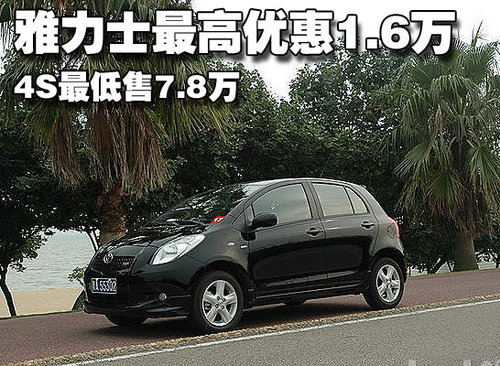 據廣汽豐田4S店銷售人員介紹,現在購買雅力士車型最高優惠現金1.5萬元。低配車型優惠1.3萬元,目前店內有至尊版現車供應,顏色以黑色、灰色為主,其它車型顏色需預訂。如消費者有意購買,到店詳談會有更優惠的價格。北京地區各4S店由于訂單不同,各店銷售的現車顏色有所不同。