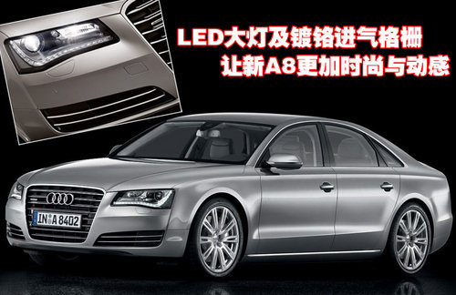 從奧迪新A8車型的前臉可以看出,LED自適應(yīng)前大燈、圓形前霧燈、獨(dú)立牌照支架以及鍍鉻進(jìn)氣格柵等升級讓其更加時(shí)尚與動感。