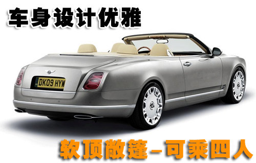 這款新車擁有與Mulsanne四門豪華轎車相同的華麗外形,采用軟頂敞篷設計,兩排座椅可舒服的乘坐四位成年人。內飾豪華舒適,用料考究屬于奢侈級的豪華敞篷轎跑車。