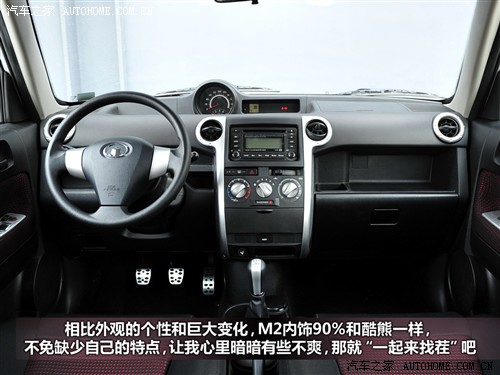 重新設計的座椅在腿部和側向支撐方面都值得稱道,不足的是,座椅并不能進行高低調節,這點上還沒有它的兄弟M1呢。同酷熊一樣,超大的空間也是哈弗M2最大的亮點,身高為1.78米的乘客坐在前排調到合適的駕駛位置后,頭部到車頂還有兩拳有余的距離,后排空間的頭部和腿部的空間也是大的出奇,而且完全有資格與更高級別的車型較量。按比例放倒的后排座椅增強了實用性,如果將座椅全部放倒,可形成空間巨大的載貨平臺。