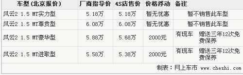 風(fēng)云2兩廂共有4款車型,指導(dǎo)價為5.18萬-6.08萬。根據(jù)奇瑞4S店銷售人員介紹,目前店內(nèi)銷售的車型只有進取型和豪華型兩款,現(xiàn)在購車即可享受2000元現(xiàn)金優(yōu)惠,此外4S店還贈送三年12次免費保養(yǎng)。