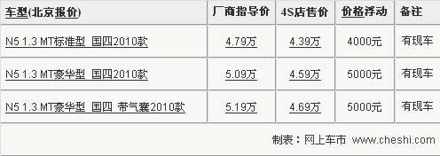 夏利車型在國內的銷量一直都處于很平穩的高度,超高的性價比成就了夏利車型出色的認可度。天津一汽夏利與去年年底推出了全新夏利N5車型,在夏利其他車型光環的照耀下,N5同樣交出了一份很出色的答卷。近期,網上車市走訪了天津一汽夏利北京地區4S店,了解到夏利N5最新的市場信息,具體信息請參考下表: