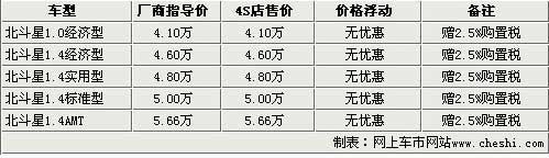 昌河鈴木北斗星作為一款適合家庭使用的小型MPV車型,在國內(nèi)深受人們喜愛。車身小巧、價格低廉,既適合家庭使用,也適合商用,北斗星成為了昌河鈴木旗下的一顆閃亮之星。近日,網(wǎng)上車市走訪了北京地區(qū)昌河鈴木經(jīng)銷商,對北斗星最新的市場情況進(jìn)行了了解,具體信息請參考下表: