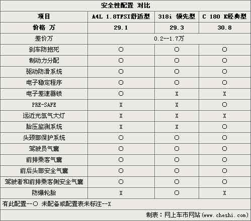 在主動(dòng)安全性能方面三款車型所能提供的電子系統(tǒng)都比較細(xì)致,一般消費(fèi)者所注意的ABS、ESP功能都能夠在3款車型的系統(tǒng)中體現(xiàn)。被動(dòng)安全方面,前排雙氣囊、側(cè)面氣囊、氣簾都是3款車型的標(biāo)準(zhǔn)配置。其中奔馳基于車輛整體安全考慮研發(fā)的PRE-SAFE安全系統(tǒng)通過主動(dòng)、被動(dòng)以及車窗等設(shè)備為駕乘者提供綜合的安全保障,這方面的確要比其它兩款競爭車型更為細(xì)致。因此,在這樣的基礎(chǔ)上您可能也會(huì)選擇安全配置更加全面的那一款。