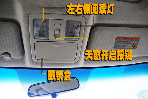 東風(fēng)日產(chǎn)新軒逸兩側(cè)遮陽(yáng)板之間為駕駛席和副駕駛席分別提供了獨(dú)立式的閱讀燈,方便車(chē)主與乘員在夜間查看地圖等。閱讀燈前側(cè)配有眼鏡盒。