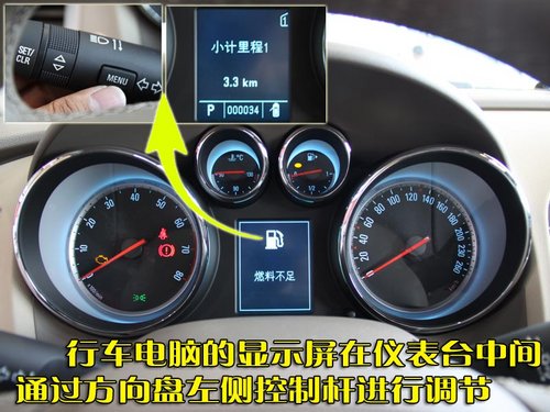 英朗GT的駕駛員信息系統與雪佛蘭科魯茲、英朗XT、別克新君威沒有什么不同,從顯示器部分到位于方向盤左側控制桿的按鈕部分,都完完全全是零件共用背景下的產物。
